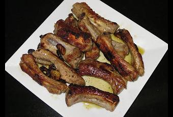 Ingredientes:- 500 gramos de costillas.- 5 dientes de ajo.- ½ limón.- 1 hoja de laurel.- Medio vaso de vino blanco.- Sal y pimienta.- Aceite de oliva virgen extra.- Perejil.Elaboración:Ponemos en un bol las costillas, junto con los dientes de ajo laminados, salpimentamos y añadimos la hoja de laurel, el chorro de medio limón, el perejil fresco y el aceite y metemos bien tapadas en la nevera de un día para otro.