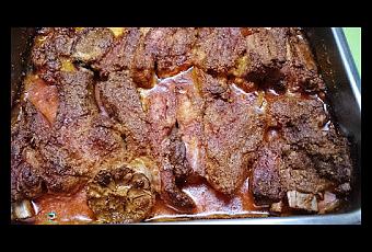 3.- Precalentamos el horno a 200ºC, asamos las costillas 45 o 50 minutos hasta que estén bien cocinadas. Las retiramos del horno y las servimos con una guarnición de papas (patatas).