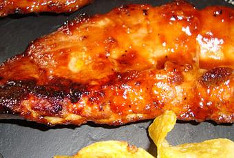 Pasado este tiempo sacar la bandeja y con un pincel de cocina untar la costilla bien de la salsa que hemos hecho anteriormente y volver a meter en el horno durante 5 minutos, la volvemos a sacar y le damos la vuelta y la impregnamos por esa cara.