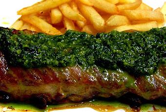 Montamos el plato con el costillar y cubrimos con la salsa pesto de albahaca y menta fresca.