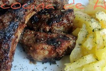 - Calentar la plancha eléctrica y dorar las costillas, mojándolas con la salsa.