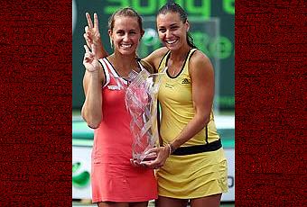 En el match trascendental del dobles femenino, Gisela Dulko y Flavia Pennetta derrotaron a Nadia Petrova y Samantha Stosur por 6-3, 4-6 y 10-7. Juntas, en Miami, la argentina y la tana soltaron la inmensa alegría porque no sólo superaron a la tercera pareja preclasificada, sino que, además, batieron a las duplas de Nuria Llagostera Vives-María José Martínez Sánchez (2º favoritas) y Lisa Raymond-Rennae Stubbs (4º).Dulko ya había festejado con Pennetta en Bogotá 2006, Hobart y Bastad 2009. Con este nuevo laurel, la tigrense suma diez logros en esta especialidad.
