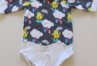 Me quedaba todavía un retalito después de haber cosido la camiseta "Cantando bajo la lluvia" al peque y uno conjunto de bebé para un regalo.