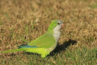 Una serie de imágenes tomadas a primeras horas de una  mañana de mediados de agosto en la Avenida de las Victorias casi Avenida Costanera en San Miguel del Monte, estaba un grupo de cotorras (Myiopsitta monachus) forrajeando en los amplios márgenes con césped corto a los costados del boulevard. Esta es una especie bastante asustadiza en pleno campo, uno no se puede acercar ni siquiera a una veintena de metros, no obstante aprovechan las oportunidades brindadas por los humanos y se han adaptado a zonas urbanas.