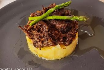 - A los 30 minutos de haber echado el vino aproximadamente le vamos echando caldo . La carne tiene que estar casi sumergida. Vas echando el caldo que vaya necesitando , a fuego medio-bajo y vaya cociendo hasta que la carne se separe del hueso y este muy blandita. Puede estar entre 3 y 4 horas.