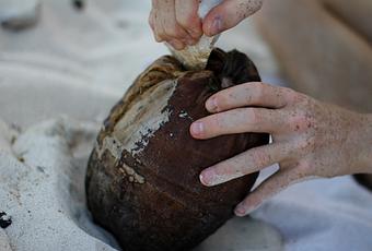 Hi! This is what happened on Saturday: half an hour to open a Coconut who was at the beach in front of the Papaya Playa Project Hotel. Well, they were many of them, this is the Caribbean... Alberto did all the job, me I was only supporting him and swimming a bit while he was fighting with the coco! At the end was worth it because the coconut tasted great!!