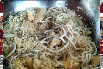Ponemos a hervir el agua, cuando hierve le añadimos el aceite y la sal, y ponemos el cous cous.