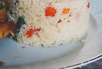 3. Cocinamos el couscus, calentando un poco de agua y sal, cubrimos el couscus con el agua y dejamos reposar.