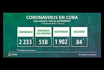 Hasta el día de ayer, 11 de junio, se encuentran ingresados en hospitales para vigilancia clínico epidemiológica 558 pacientes. Otras 445 personas se vigilancia en la atención primaria de salud.Para COVID-19 se estudiaron 2 mil 090 muestras, resultaron 14 muestras positivas. El país acumula 129 mil 132 muestras realizadas y 2 mil 233 positivas (1,7%). Por tanto, al cierre del día de ayer se confirman 14 nuevos casos, para un acumulado de 2 mil 233 en el país.
