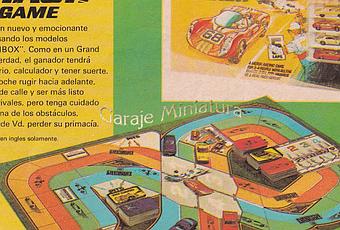 Básicamente este producto, publicado en el catálogo internacional para coleccionista del año 1970, es un juego de mesa. En cambio, de usar cuatro autos de plástico venía con cuatro modelos de Matchbox de la escala 1:64.