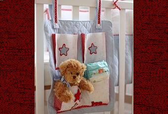 Hará cosa de un mes, Laura del blog De tijera rápida nos habló de sus tutoriales y… ¡nos enamoramos de su organizador de bolsillos de tela para bebés! Una bonita obra en la que guardar todas aquellas cosillas que va bien tener a mano al lado de la cuna o del cambiador de un bebé un recién nacido, ¿cómo lo veis? A nosotros nos pareció que le había quedado de revista y que también podríamos seguir sus pasos para crearnos un organizador para el baño, por ejemplo, con otro estampado o material.