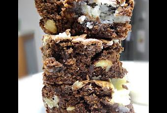 Ingredientes: 4 huevos, 250grs chocolate fondant, 250grs mantequilla, 150grs harina, 250grs azúcar, 50grs cacao en polvo, esencia de vainilla, una pizca de sal, 75 grs almendras tostadas, 75 grs nueces peladas, 1 cucharadita de levadura en polvo. Para la crema de queso: 300grs de queso crema, 200grs azúcar.Fundimos el chocolate con la mantequilla y reservamos.