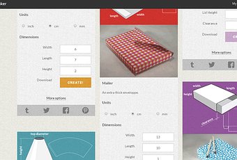 Se trata de Template Maker. Una aplicación online con la cual podrás diseñar tu propio packaging. De momento ésta web dispone de 15 tipos de cajas y sobres diferentes, los cuales puedes descargar de forma gratuita y usar de template para tus creaciones. Lo único que tienes que hacer es entrar a la web de Template Maker, elegir el diseño que más te guste o que más se adapte a lo que quieres hacer y una vez lo hayas escogido, solo tienes que personalizarlo a tu gusto. Ingresas las medidas de lo que necesitas y voilá, ya puedes descargarlo.