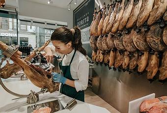 Una tarea que corresponde a los maestros cortadores de Viandas Hacienda Zorita que aprovecha al máximo cada pieza obteniendo casi el doble de cantidad que si se hace en casa. Para asegurar un corte perfecto utilizan utensilios de los mejores materiales, consiguiendo el tamaño idóneo en cada loncha para su degustación, siempre frescas y sabor a recién cortadas.