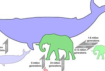Para pasar del tamaño de un gato al de un elefante se requiere un cambio evolutivo que se desarrolla en aproximadamente 10 millones de generaciones. Para llegar a la dimensiones de una ballena, sin embargo, los animales acuáticos necesitaron la mitad del tiempo.