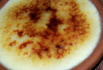 - A la hora de servir espolvoreamos con azúcar y lo quemamos con una pala de hierro al rojo o con un soplete para cocina quedando una capa crujiente de azúcar caramelizado.