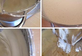 - La crema tiene que quedar firme como en la foto pero debes tener cuidado porque si sigues batiendo eternamente, la crema se transformará en mantequilla y se volverá cremosa otra vez.
