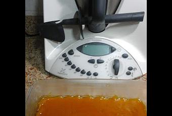 Escurrimos la pulpa de boniato y la ponemos en el vaso de nuestra Thermomix.