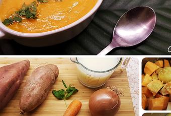 - Pela y corta en trozos los boniatos, las zanahorias, la cebolla y la patata. La cebolla en trozos más pequeños.