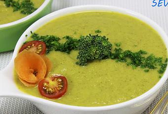 2- Agregar el brócoli en ramilletes,sal, pimienta y caldo frío: Válvula cerrada, 4 minutos, menú vapor, 140º, alta presión. Rectificar de sal y triturar, hasta que quede muy fino.