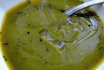 - Añadir 1 cuch. de queso crema, 100 ml. de leche, sal y pimienta. Triturarlo hasta que quede una crema fina. Decorar con un chorrito de nata o aceite y servir.