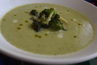Sirve la crema acompañada de las brócolis salteadas, unas gotitas de AOVE y de leche evaporada,.