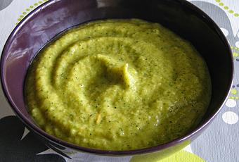 Receta:- Lavamos el calabacín, el puerro y la patata.- Cortamos el puerro en tiras y lo rehogamos en una sartén con un chorrito de aceite hasta que esté dorado.- En una olla cocemos la patatas y el calabacín hasta que estén blandos.- Pela la patata e introdúcela junto con el calabacín, el puerro, los dos quesitos y una pizca de sal en un vaso apto para la batidora y bátelo bien hasta que quede una crema suave.