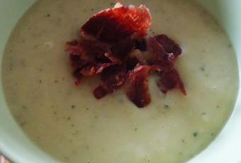 5. Servir la crema bien caliente con el jamón crujiente por encima.