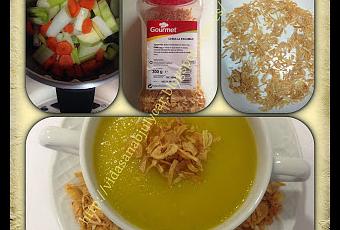 Crema de calabacín con tropezones de cebolla tostadaIngredientes:
