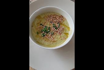 Poner en el vaso el aceite, la mantequilla, el puerro y el ajo y trocear programando 8 segundos a velocidad 5. Con la espátula, bajar los restos de verduras de la tapa y del interior del vaso hacia las cuchillas.