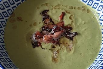 Verter la crema en un bol,nosotros la hemos acompañado con trocitos de bacon frito.