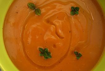 Ingredientes:-1 kg de calabaza pelada y despepitada-1 cebolla grande-4 hojas de laurel-1´5 litros de caldo de pollo, de verduras o agua-mantequilla o aceite de oliva (lo que prefiráis) -sal y pimienta negra molida-hojas de menta para servir1-Sofreir la cebolla con la mantequilla o el aceite hasta que esté trasparente. Añadir la sal, la pimienta y las hojas de laurel.2-Añadir la calabaza y cocinar unos minutos a fuego lento. Agregar el caldo o el agua y cerrar la olla a presión. Una vez que empiece a hervir dejar 20 minutos.3-Sacar las hojas de laurel y triturar. En este punto es el momento de rectificar la crema con sal y pimienta y si ha quedado muy espesa o muy líquida es el momento de añadir mas caldo o ponerla a hervir para que reduzca.Servir muy caliente y con unas hojas de menta.Como despedida os diremos que estamos planeando seriamente ponernos a dieta...no quiero ni pensarlo.