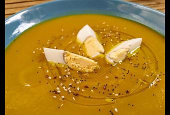 Vamos a preparar una crema de calabaza, con un toque de curry y por encima le pondremos huevo cocido!!!