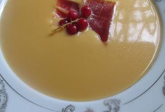 Hace tiempo que una amiga me pidió la receta de la crema de calabaza, la tradicional por decirlo de alguna manera y he aprovechado que estamos en vísperas de Navidad para traerla y de paso darle un toque más especial, el que sin duda le aporta el jamón ibérico, la mejor manera para convertir esta crema, valga decirlo buenísima, en un plato de categoría para la cena navideña.