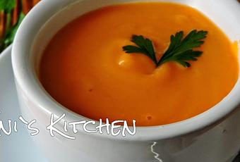Pelamos la calabaza después de cortarla en dos. Sacamos las pipas y cortamos la calabaza en dados.Pelamos las patatas la cebolla, las zanahorias y el ajo.Utilizamos solamente la mitad de la cebolla, la cortamos en dos o tres trozos, y procedemos igual con las patatas y las zanahorias.Ponemos todo a hervir en un cazo, añadimos agua para que cubra todas las legumbres, añadimos 1/2 cucharada de sal y tapamos .Cuando esta todo tierno, escurrimos el caldo, y trituramos las verduras. Añadimos el queso crema, este le dará, ademas de sabor, mucha cremosidad .Añadimos caldo al gusto, también el Knorr, y volvemos a ponerla al fuego un par de minutitos.Servimos caliente!Enjoy it!