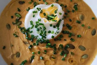Servir con un chorrito de aceite de oliva, unas pipas de calabaza y cebollino, y un huevo escalfado, por ejemplo.