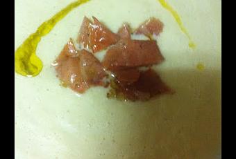 - Sirve la crema con un chorrito de aceite de oliva en crudo y el jamón. Si quieres el jamón crujiente mételo durante 15 minutos en el horno, o dos minutos en el microondas, entre dos capas de papel de horno.