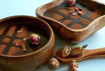 INGREDIENTES250 ml de leche, 80 gr de azúcar, 20 gr de maicena, 50 gr de chocolate al 70% Lindt, unas gotas de esencia de rosas, 2 o 3 rosas secas para infusión y 50 gr de mantequilla sin sal.Decoración: cacao puro en polvo y rosas secas para infusión.PREPARACIÓNHervir 200 ml de leche con las rosas secas. Infusionar 5 minutos y colar.Disolver en los 50 ml de leche la maicena.Poner a fuego medio, la leche infusionada con el azúcar y el chocolate troceado, dejar que se derrita, añadir la leche con la maicena y remover hasta que espese. Retirar del fuego, añadir la esencia de rosas y la mantequilla en trocitos, integrar bien.Verter en los cuencos y dejar entibiar, llevar a la nevera.Una vez fría, decoramos con cacao puro en polvo y rosas secas.