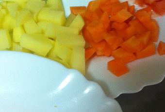 - Añade la patata, pelada y cortada en dados, y cubre con agua. Deja a fuego medio durante 10 minutos.