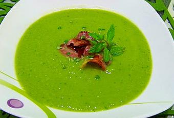 Incorporar el caldo a los guisantes y dejar cocer hasta que estén tiernos. Triturar y comprobar el punto de sazón. Precalentar el horno a 250º C.