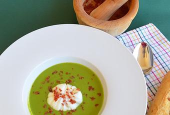 Esta vez elegido la verdura, es decir los guisantes, que me apetecía una cremita de guisantes con huevo y jamón, pero no jamón normal, si no sal de Jamón, que ya tuvimos un post de como se hacia y es muy fácil, si quieres saberlo PINCHA AQUI.