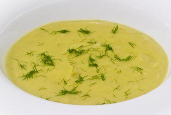 7.- Servimos tibia o caliente, espolvoreando hojas picadas de hinojo por la superficie.