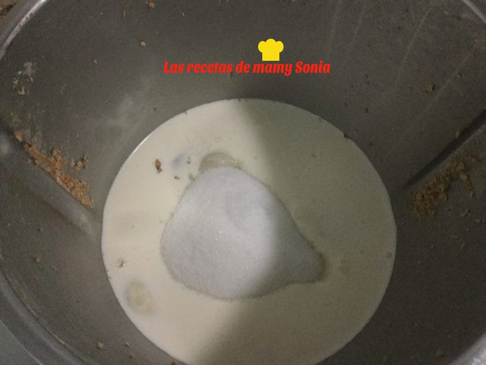 Con ayuda de la thermomix, batidora, batimos los huevos con la leche, la nata, el azúcar y las manzanas.