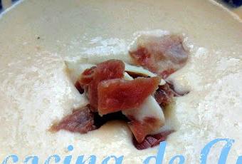 - Mezclar la pulpa con 1 bote de nata para montar. Sazonar con sal y pimienta, y añadir 4 cuch. de aceite y 2 de vinagre. Espolvorear con tiras de jamón serrano fritas o a taquitos, y servir muy frío.