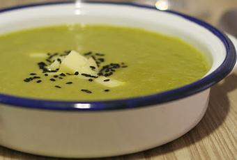 CREMADE PAK CHOI CON CÚRCUMA Y DADOS DE SCAMORZA AHUMADA