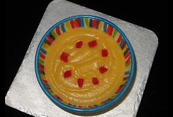 Una vez pasado el tiempo, pasamos por la batidora y decoramos con trozos de pimiento del piquillo.