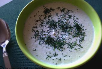 1 pepinoUn poquito de sal marina1-2 cucharadas de aceite de oliva virgen extraUn chorrito de zumo de limónPimienta negraEneldo fresco picaditoPREPARACIÓNPonemos en el vaso de la batidora las almendras, el pepino pelado, la sal, el aceite, el zumo de limón y pimienta negra al gusto. Trituramos. Si la queremos más líquida, añadimos un poquito de agua fría. Servimos en un cuenco y decoramos con eneldo fresco. Está más rico si está muy frío.