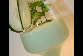 1 Pepino grande 1 yogourt natural Hojas de menta 1/2 diente de ajo lima Pimienta 25 ml AOVE sal