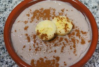 Pele el plátano, córtelo en rodajas y échelos en un recipiente para batir. Añada el requesón, la leche en polvo, la miel, la canela al gusto y bata todo muy bien hasta obtener una mezcla cremosa y homogénea. Sirva la crema en unos recipientes y póngalos a refrigerar durante una hora. Una vez refrigeradas y justo antes de tomar, adórnelas con rodajas de plátano y canela espolvoreada por encima. Sírvala bien fresquita.