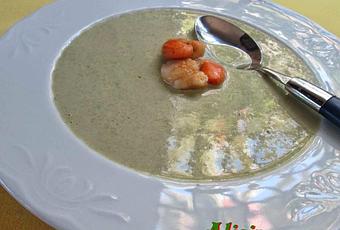 - 120 g. de rúcula.- 1 cogollo (pequeño) de lechuga.- 1 patata mediana.- 1 cebolleta.- 1 puerro (la parte blanca).- 1 paquete de leche evaporada.- 1 vaso de agua.- Vieiras (descongeladas) 1-2 por persona.- Sal.- Pimienta molida.- Aceite de oliva 5 cdas.